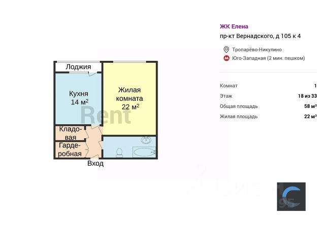 От года, комм. платежи включены (без счётчиков), комиссия 70%, залог 65 000 ₽
