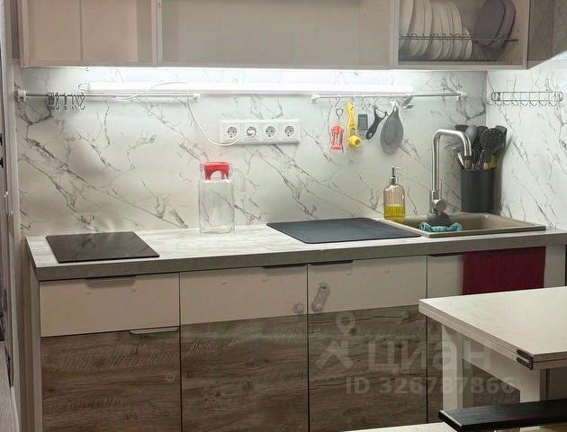 Это ОЧЕНЬ МАЛЕНЬКАЯ (!) СТУДИЯ под ключ, СО СВОИМИ ОТДЕЛЬНЫМИ КУХНЕЙ И САНУЗЛОМ. 18 метров-это общая площадь, жилая с кухней - примерно 10 кв.м. Смотрите ФОТО, они реальные.