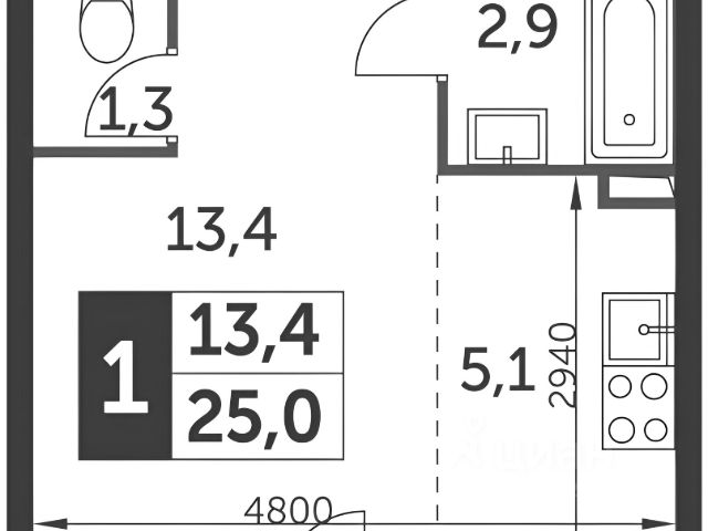 От года, комм. платежи включены (без счётчиков), комиссия 80%, залог 45 000 ₽
