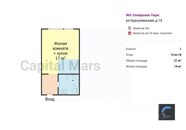 • ✓ В базе Циан 2 1-комнатных квартир на улице Красулинская в Москве.