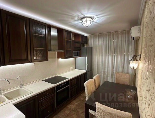 ЖК Мичурино. Монолитно-кирпичный дом бизнес класса, однокомнатная - студия в отличном состоянии на 18 этаже с панорамным видом из окон. Квартира после качественного евроремонта, полностью оборудована мебелью и бытовой техникой. На кухне встроенный кухонный гарнитур + остров под каменной единой столешницей со всей бытовой техникой (Siemens, Liebher) включая посудомоечную машинку и микроволновку. Обеденная группа - стол, стулья. В комнате кожаная двуспальная кровать, трехстворчатый шкаф, стеллаж, стол, телевизор Panasonic диагональ 42. Интернет и телевидение МГТС GPON (99 каналов). В прихожей шкаф, вешалка, зеркало, журнальный столик. Санузел совмещен, испанская плитка и керамогранит оборудован современной сантехникой Villeroy Bosh и Jacob Delafon краны и душевая система Grohe, из кухни выход на застекленную лоджию. Кондиционер. Шикарная входная группа, видеонаблюдение, консьерж, шлагбаум. На территории комплекса есть спортивные площадки, магазины, остановка транспорта 5 мин. До метро 10 минут пешком. Удобная транспортная развязка. Квартира сдается на длительный срок, краткосрочная аренда на несколько месяцев обсуждается отдельно. Предпочтение стабильным платежеспособным клиентам, рассмотрим всех без детей и любых животных. Звоните, оперативный показ. Снять 1-комнатную квартиру на улице Лобачевского в Москве на длительный срок.
