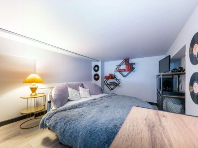 С удовольствием разместим до 4-х гостей, ведь у нас есть удобная кровать и удобный диван. Внутри, как всегда, продумали всё до мельчайшей детали, чтобы нашим гостям было максимально уютно и комфортно. Есть стиральная машина с функцией сушки, а также посудомоечная машина. Бельё, полотенца, тапочки, зубные наборы, косметические средства - всё это всегда предоставляем гостям во всех наших апартаментах. И только небо и звезды будут наблюдать за вами, ведь окно у нас расположено тоже очень необычным образом, в потолке ) На первом этаже здания есть большой супермаркет, можно спуститься прямо в тапочках ) Приезжайте всё увидеть сами, будем вам очень рады!
