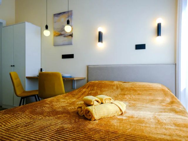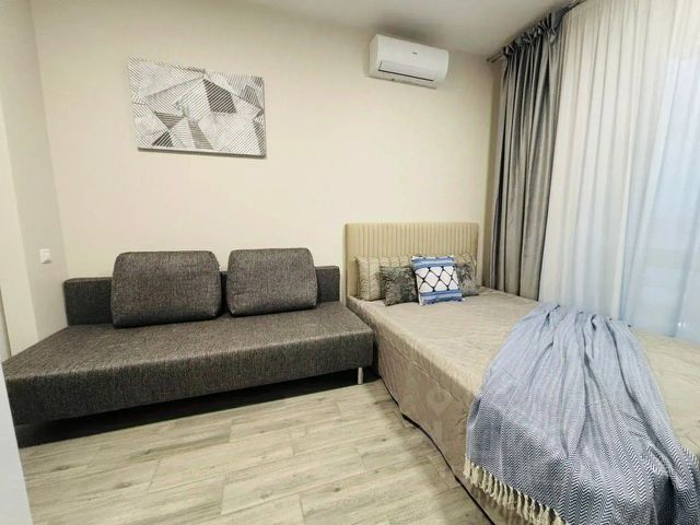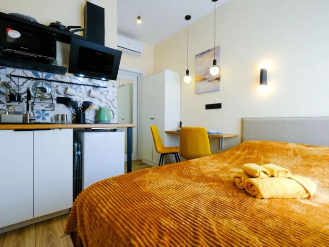 -В студии имеется комфортабельная кровать с высоким ортопедическим матрасом (180х200).
