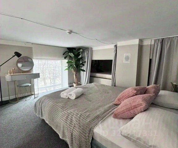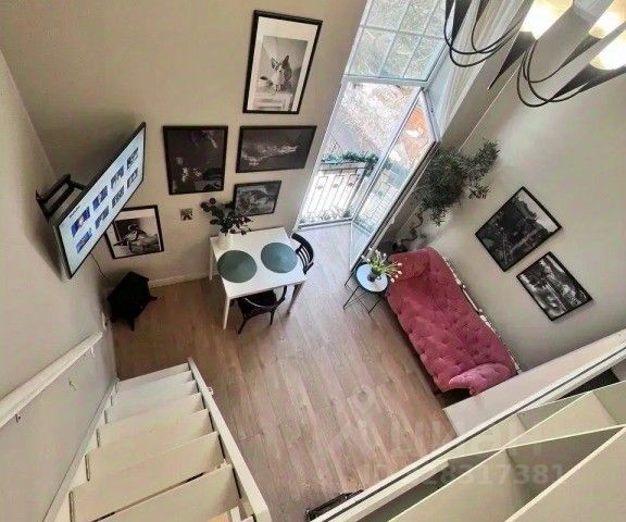 Это двухуровневая квартира-студия, общей площадью 28 кв.м (площадь по полу 19 кв.м.+ 9 кв.м. второй уровень). Потолок, высотой в 4,5 метра и большие светлые окна не смогут оставить вас равнодушными.