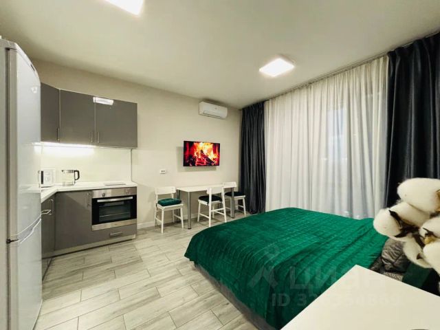 -В студии имеется комфортабельная кровать с высоким ортопедическим матрасом (180х200).