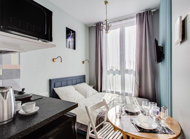 В просторных 32 метровых апартаментах в вашем распоряжении будут: - просторная прихожая - единое пространство, в котором выделены зона кухни, обеденная зона и спальная зона - ванная комната с полноценной ванной - застекленный балкон.