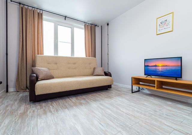 В квартире есть все, что нужно для комфортного проживания: двуспальная кровать, раскладной диван, WiFi, телевизор, стиральная машина, микроволновая печь, электрический чайник, полотенца, постельное белье, посуда, столовые приборы, утюг, гладильная доска.