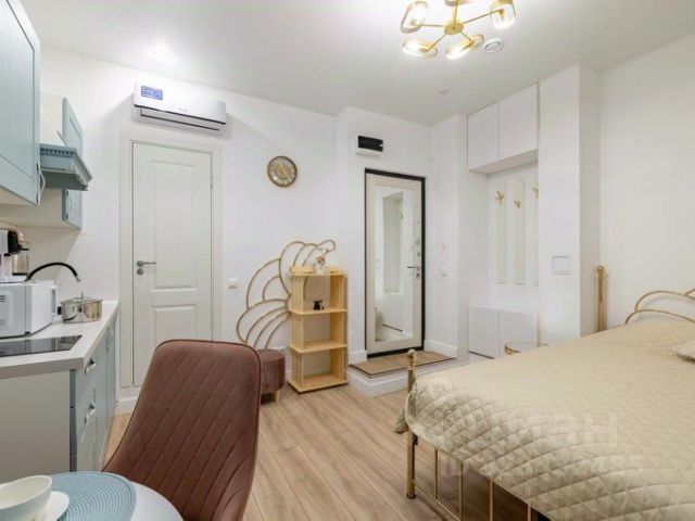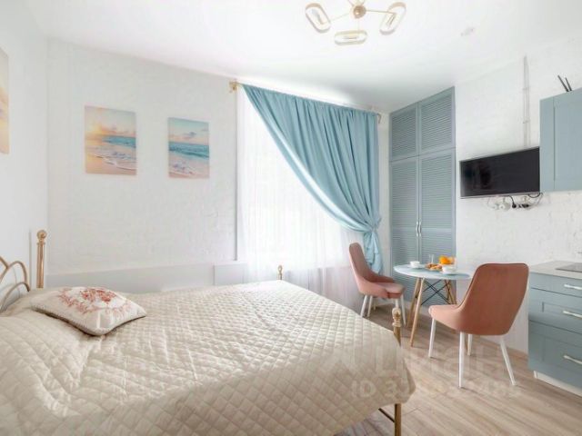 В студии имеется двуспальный диван-кровать, который с помощью матраса превращается в полноценную кровать., ЖК телевизор. В квартире есть все необходимое для отдыха и работы: безлимитный интернет, Wi-Fi, кабельное телевидение, холодильник, стиральная машина, электрический чайник, СВЧ, фен, утюг, гладильная доска, посуда. Не сдаётся для вечеринок. Не курить. Без животных.