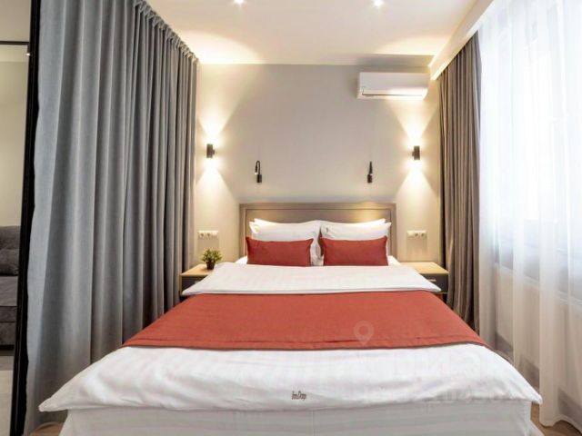 В квартире для удобного проживания имеется современная мебель и техника: кондиционер, вместительный шкаф, одна большая кровать двуспальная и раскладывающийся диван, холодильник, микроволновка, газовая плита, скоростной WI-FI, Спутниковое ТВ, стиральная машина, ЖК телевизор, гладильная доска, утюг, сушка, оборудованная кухня, полный комплект посуды для приготовления и приёма еды, шампунь, антибактериальный гель, мыло, полотенца и пастельное бельё.
