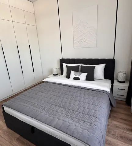 Плита и вся посуда, необходимая для приготовления и принятия пищи, обеденный стол, микроволновая печь, электрический чайник, холодильник, утюг, гладильная доска, стиральная машина, сушилка для белья, высокоскоростной интернет, wi-fi, телевидение, smart tv!