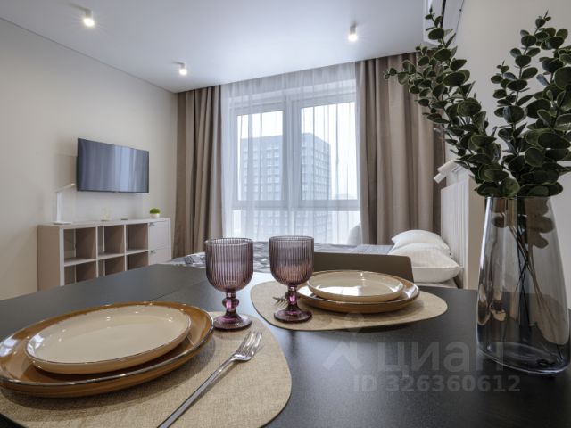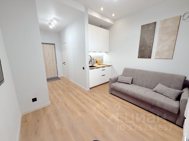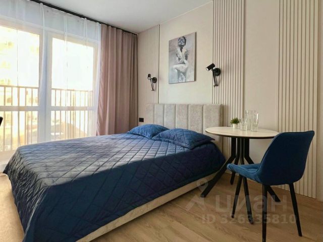Просторная и светлая студия с современным дизайном. Интерьер выполнен в нейтральных тонах, что создает атмосферу уюта и спокойствия.