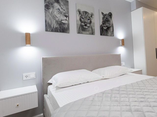 Апартаменты оснащены всем необходимым для комфортного проживания: стиральная машина, телевизор со SMART TV и множеством каналов, кухня с холодильником, плитой, микроволновкой, чайником и посудой, фен, утюг, сушилка для белья и гладильная доска, чистое постельное белье и махровые полотенца, высокоскоростной Wi-Fi.