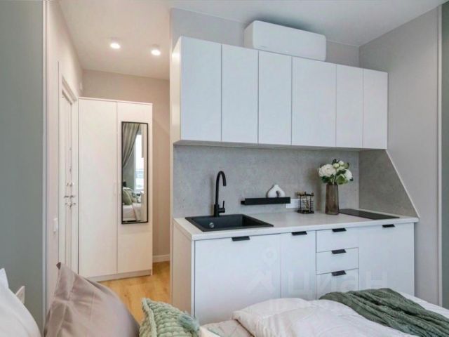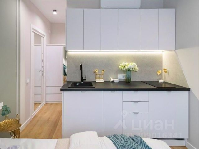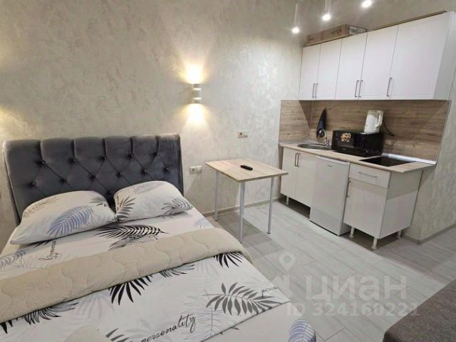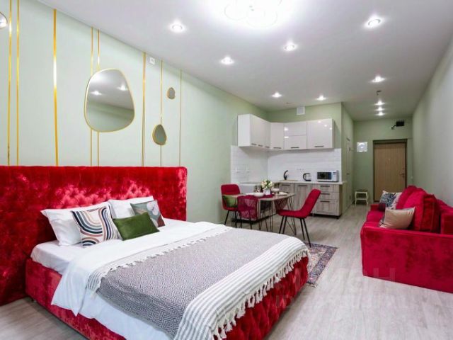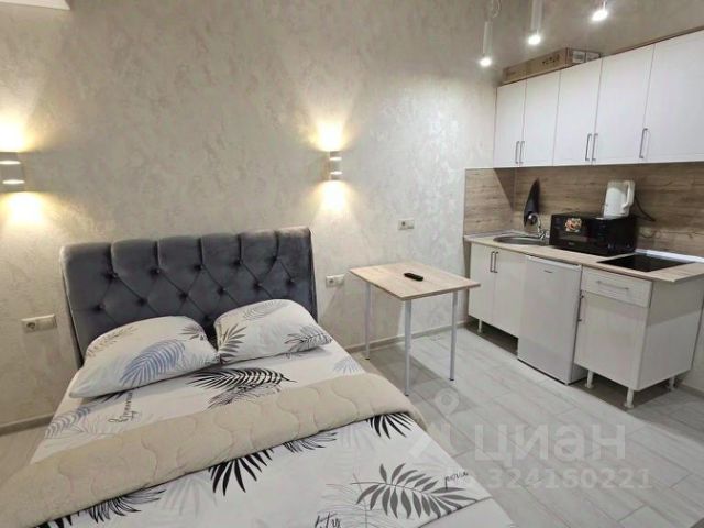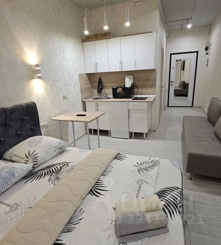 В апартаментах: конвектор , тёплые полы по всему периметру. SMART ТВ , с множеством кино-подписок, кондиционер, утюг, гладильная доска, сушилка, отпариватель, зонт. В ванной: набор полотенец и халатов, шампуни , бальзамы и гели для душа, фен и утюжок для волос. Кухня полностью оборудована всем необходимым: холодильник, электрический чайник; микроволновая печь; вся необходимая посуда, фильтр для воды. В студии большая двух-спальная кровать, ортопедическим матрасом размером 160х200. Рабочая зона, полноценная кухня. Площадь апартаментов 22 кв.м., что позволяет комфортно разместить до 2-х гостей.