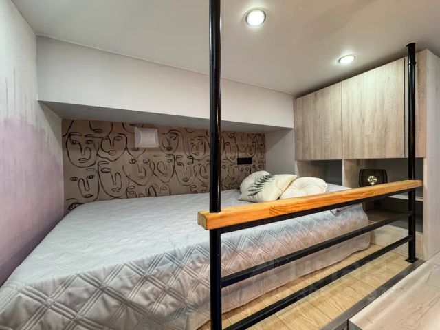 - Спальная зона с комфортабельной полутороспальной кроватью (135x200 см).