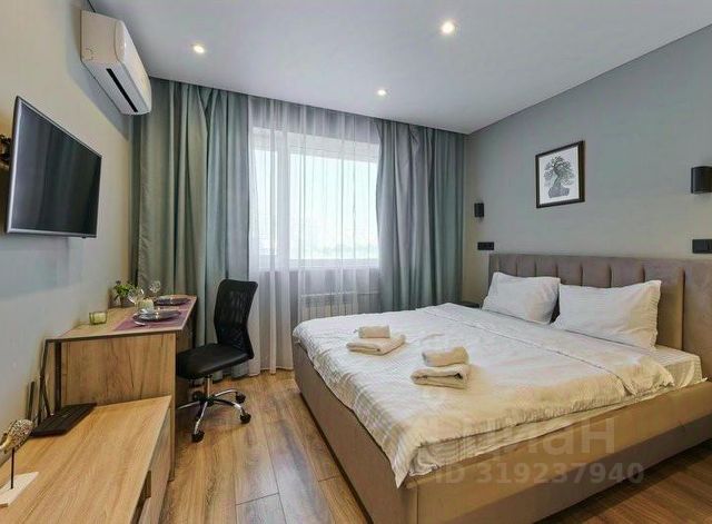 Удобства в апартаментах: Wi-Fi (100мб сек ), Смарт Тв 50 дюймов, СВЧ, чайник, вся необходимая посуда, качественные постельное белье и полотенца, тапочки, зубной набор, гель, шампунь, утюг, гладильная доска, фен и прочие бытовые мелочи. Шикарные апартаменты с дизайнерским евро-ремонтом, в светлых тонах, со всей необходимой мебелью. Спальные места: двуспальная кровать(160 на 200). Встроенная кухня, душевая кабина, импортная сантехника.