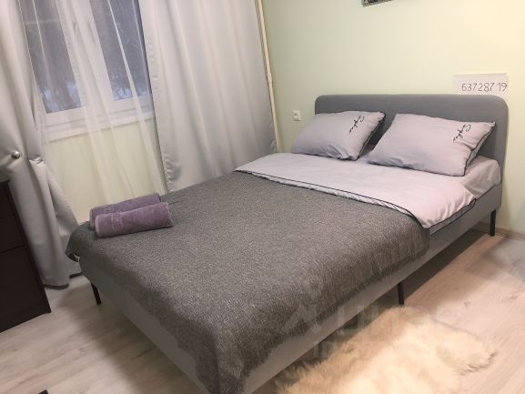Спальня: кровать 160*200, качественный жесткий матрас, белое постельное белье (стираем и гладим в прачечных), комод, выход на лоджию.