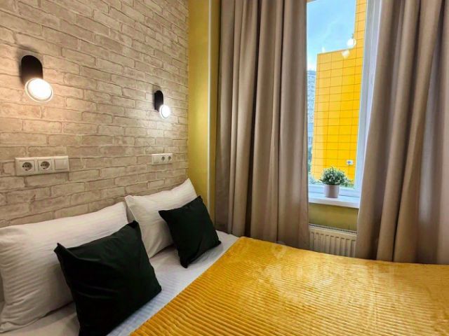 Уютная евродвушка, состоящая из отдельной спальни (10 кв.м.) и кухни-гостиной (21 кв.м.) Большая двуспальная кровать в отдельной спальне, а также диван и односпальная кровать в гостиной позволят вместить до 3х гостей.