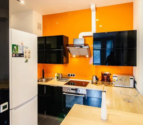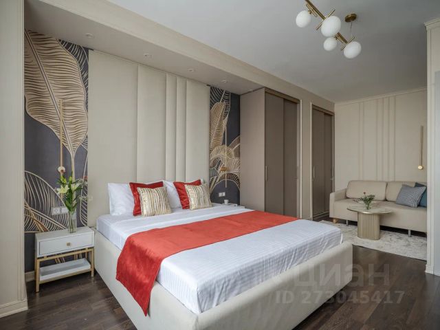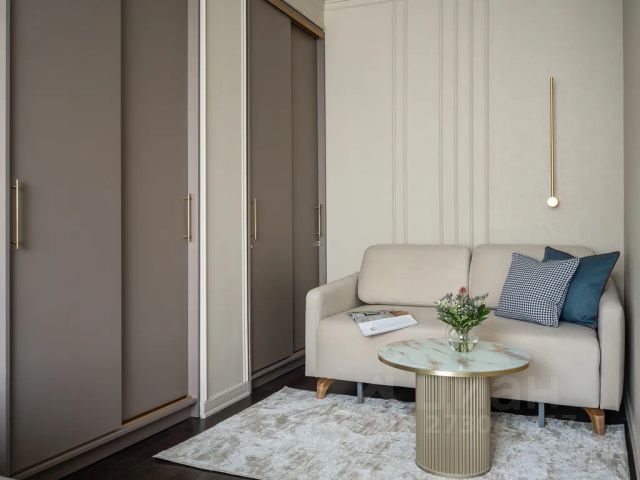 В доме есть собственный ресепшен с круглосуточным консьерж-сервисом, охрана, отдельный лифт к апартаментам. Это студийный апартамент с 1 спальней, высота потолков — 4 метра. Площадь апартаментов — 55 кв. м.