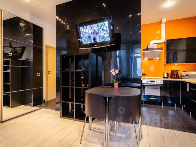 Для проведения вечеринок в апартаментах имеется стол-трансформер, за которым могут разместиться до 12 человек.
