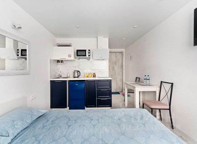 — Полностью оборудованная кухня — плита, холодильник, микроволновка, фильтр для воды