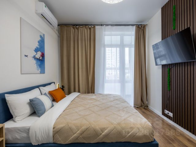 К вашим услугам электро-плита, чайник, холодильник, столовые приборы, посуда, кастрюля, сковородка, стиральная машина, утюг, гладильная доска, халаты, тапочки, полотенца, огромная прихожая, шкафы для одежды, особо широкая кровать напротив окна и с кондиционером дующим прямо на вас!