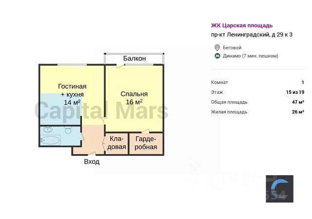 ПРИМЕЧАНИЕ: у собственника могут быть дополнительные пожелания к жильцам - обсудите их в чате или по телефону. Снять 1-комнатную квартиру с балконом рядом с метро Динамо.