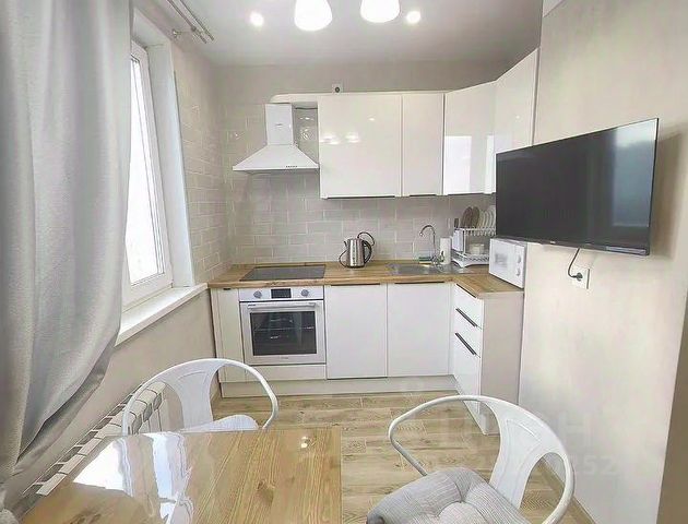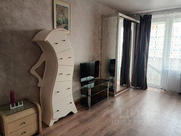 Комната с выходом на большой застекленный балкон, в комнате есть кондиционер, двух спальная кровать, шкафы, кухня 10 кв.м. с гарнитуром, диваном, посудой, фильтром для питьевой воды, стиральной машиной, холодильником, всей необходимой бытовой техникой. С/у совмещенный имеется теплый пол и (на время отключения горячего водоснабжения летом, есть водонагреватель). Обустроено рабочее место (на кухне). Проведен Интернет. Квартира меблирована и готова к проживанию. Окна выходят в тихий двор с видом на речку и лесопарковую зону. Также в доме имеется мусоропровод. Два пассажирских лифта.