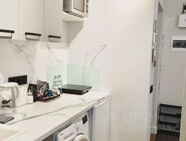 Кухня в квартире не предполагает масштабного приготовления пищи, имеется однокомфорочная индукционная плитка для небольшой готовки.