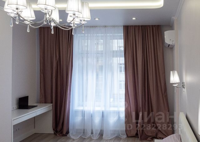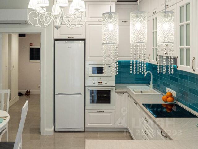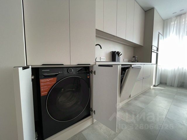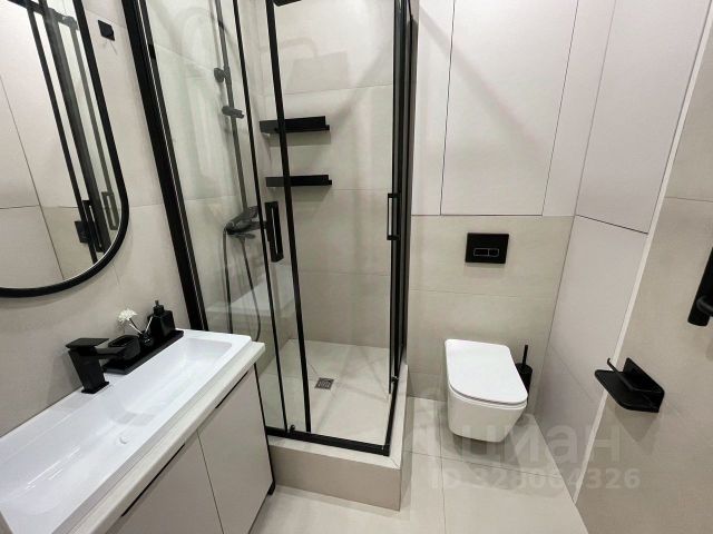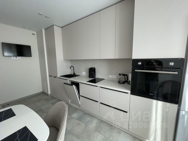 Санузел с душевой кабинкой и качественной сантехникой, инсталляция, электрический полотенцесушитель, полноценная раковина, бойлер. Кухня оснащена качественным гарнитуром, посудомойкой, холодильником, электрической плитой и микроволновкой. В комнате огромный телевизор, диван для двоих, двухсекционный шкаф, кондиционер, столик и тумба.