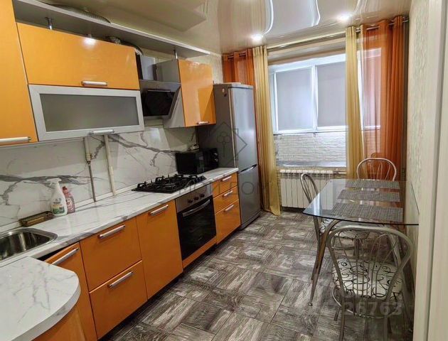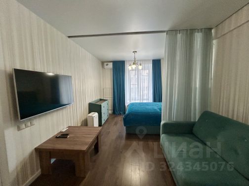 Квартира оборудована всей необходимой мебелью и бытовой техникой. В прихожей кондиционер. На кухне встроенный гарнитур с варочной панелью, духовкой, вытяжкой, холодильником и СВЧ печью, раздвижной стол, стулья. В комнате 2-сп. кровать с мягким изголовьем и 2-мя тумбочками, большой зеркальный шкаф-купе для одежды. Санузел оборудован душевой кабиной и стиральной машиной.