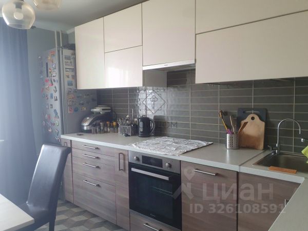 В просторной кухне, совмещенной с гостиной - функциональное рабочее место, оснащенное современной бытовой техникой, включая духовую печь, варочную панель и посудомоечную машину под единой столешницей, встроенную СВЧ, вытяжку, двухкамерный двухдверный холодильник. Большое рабочее пространство для приготовления с барной стойкой. ЖК телевизор. Отдельная обеденная зона. Выход на огромную застекленную лоджию.