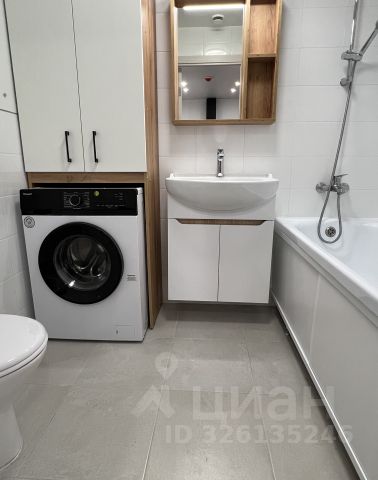 Ванная комната оборудована стиральной машинкой.