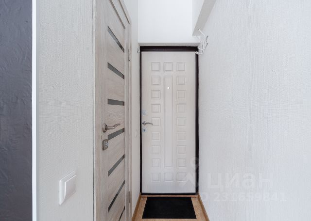 Общая площадь квартиры составляет почти 38.6 кв.м. + балкон 3 кв.м. (3м на 1м). Комната — 19.3 кв.м, из которой почти 4 кв.м. гардеробная, кухня — 9.1 кв.м. Потолки 2.7 метра.