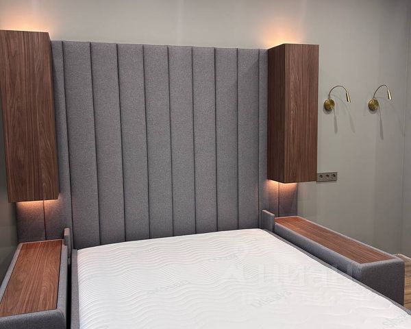 Квартира оборудована всей необходимой мебелью и бытовой техникой. В прихожей кондиционер. На кухне встроенный гарнитур с варочной панелью, духовкой, вытяжкой, холодильником и СВЧ печью, раздвижной стол, стулья. В комнате 2-сп. кровать с мягким изголовьем и 2-мя тумбочками, большой зеркальный шкаф-купе для одежды. Санузел оборудован душевой кабиной и стиральной машиной.