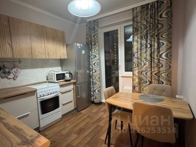Сдается уютная однокомнатная квартира с дизайнерским ремонтом (тёплый пол, подсветка потолка). Общая площадь — 38,8 кв. м, жилая — 20,8 кв. м, кухня — 9 кв. м. Квартира находится на 10 этаже 14-этажного панельного дома, построенного в 1992 году. Натяжные потолки с подсветкой и окна, выходящие на парк, создают ощущение простора и наполненности светом. До ближайшего метро всего 12 минут пешком.