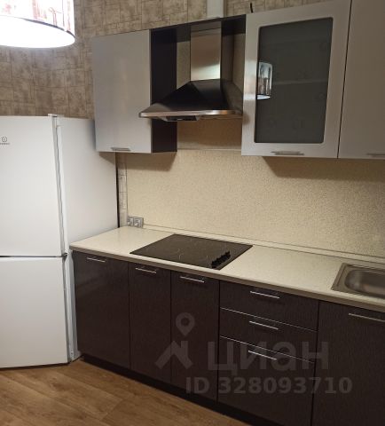 Кухонный гарнитур , встроенной техникой (ЭЛЕКТРИЧЕСКАЯ варочная панель и духовой шкаф, микроволновая печь, холодильник ) обеденный стол с мягкими стульями.