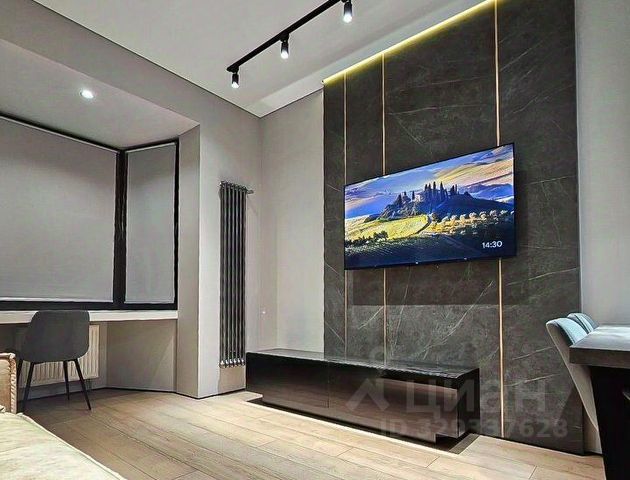 Удобная планировка для разных сценариев жизни. Просторная кухня гостиная, большой санузел с ванной, большой шкаф, 4 Окна во всю комнату.