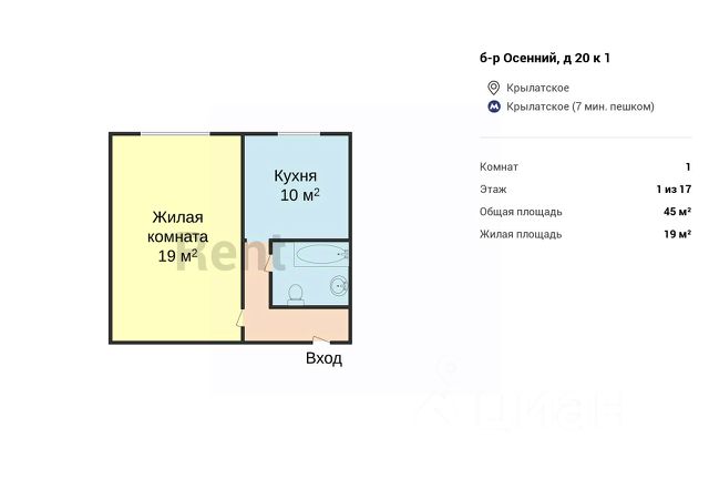 • ✓ В базе Циан 2 1-комнатных квартир с детьми на улице Мельникова в Москве