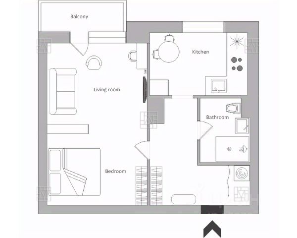 Планировка: изолированная комната с выделенными спальной и гостиной зонами с выходом на утепленную лоджию, кухня, совмещенный санузел с душ/кабиной, просторный холл, есть шкафы и доп. места для хранения вещей.