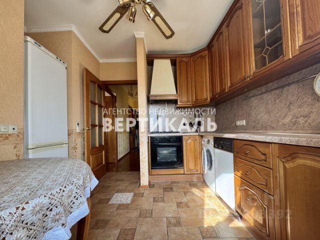Кухня- настоящий рай для кулинара - оборудована практичной мебелью с встроенной техникой: варочная панель, духовка, вытяжка, посудомоечная машина (все -Electrolux), холодильник Liebherr. Кухня соединена с гостиной (17.7 кв.м), где разместились обеденный стол и гостевой гобеленовый диван, кондиционер, возможно установить телевизор и аудиосистему.