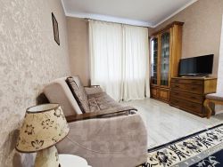 Квартира обставлена хорошей мебелью и дорогой техникой. Есть даже посуда (Тарелки, ложки и т.д). В квартире есть действующий и оплаченный интернет WI-Fi + пакет ТВ Кион и Кинопоиск.