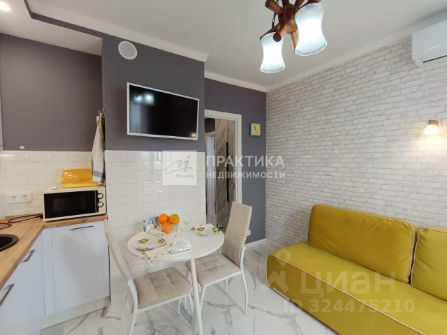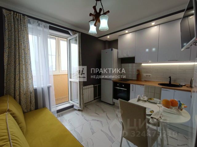 Кухня 10.1 кв.м.с имеет выход на балкон с подсветкой и потрясающим видом на город! Оборудована всей необходимой техникой - холодильник двухкамерный "No frost", индукционная плита двух конфорочная с независимым духовым шкафом, встроенная посудомоечная машина, СВЧ печь, чайник, встроенная вытяжка. Установлена сплит система. Обеденный стол, стулья, диван (раскладной), телевизор. Имеется вся необходимая посуда.