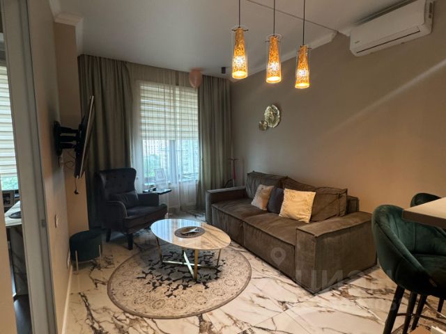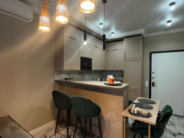 Функциональная планировка: просторная комната, в которой предусмотрены двуспальная кровать с ортопедическим матрасом, совмещённый санузел с душевой кабиной, просторный холл с тремя вместительными встроенными шкафами. Квартира полностью меблирована и оснащена всей необходимой бытовой техникой. Предусмотрено много мест для хранения. Мебель от ведущих дизайнерских бюро.