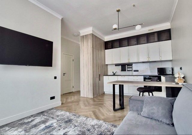 В квартире современный ремонт, мебель на кухне, в комнате, в коридоре, кондиционеры на кухне и в комнате, домофон.