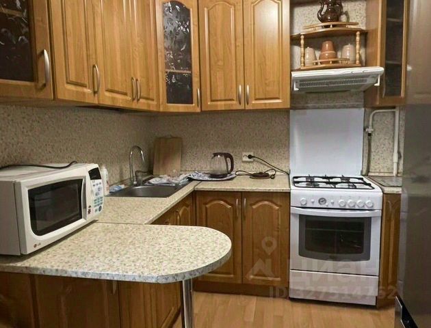 В комнате установлен новый шкаф, новая кровать и матрас размером 120х200 (постельное бельё, подушки, одеяло, наматрасник), компьютерный/письменный стол, телевизор, комод и шкаф-пенал. На кухне есть микроволновка, мини-духовка, чайник, холодильник и необходимая посуда. Балкон без отделки.