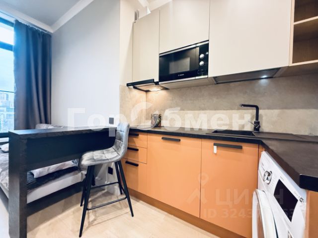 Общая площадь квартиры 13.3 м2. ПРОДУМАННОЕ зонированное пространство: открытая зона кухни с кухонной мебелью и встроенной техникой, зона спальни, кабинет, коридор и санузел.