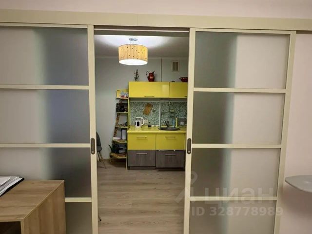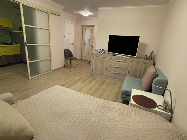 На кухне: встроенный кухонный гарнитур, вытяжка, раковина, обеденный стол и два удобных стула. Совмещенный санузел содержит унитаз, раковину, зеркало, ванную, полотенцесушитель. В комнате имеется удобный диван со спальным местом, рабочая зона: стол, кресло, вместительный шкаф, журнальный стол. Прихожая оборудована двумя вместительными шкафами для одежды и обуви. На балконе имеются встроенные шкафы для хранения. В квартире имеется напольная сушилка для белья, гладильная доска и пылесос. Квартира готова для заселения.