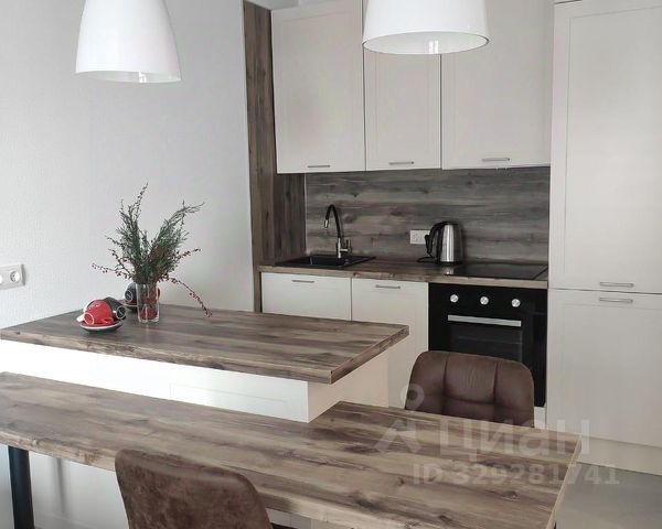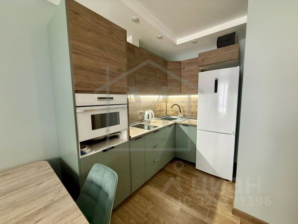 Новый, встроенный кухонный гарнитур с бытовой техникой, варочная панель, духовой шкаф, вытяжка, посудомоечная машина, двухкамерный холодильник, кухонный остров.