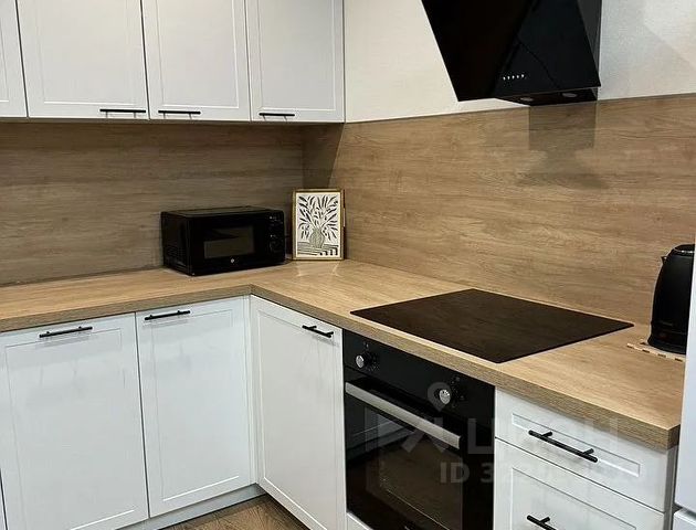На кухне вся необходимая техника: посудомоечная машина, холодильник, духовой шкаф, плита, вытяжка, микроволновая печь. Есть чайник, посуда на 4 персоны, приборы.