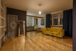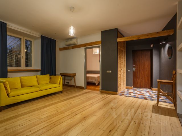 Общая площадь составляет 32 кв. м, жилая площадь — 22 кв. м, кухня — 6 кв. м. Высота потолков — 2.6 метра. Окна выходят во двор, поэтому вас не будут беспокоить шумные улицы.